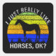 Sticker Carré J'aime vraiment les chevaux en bleu et jaune