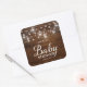 Autocollant rustique Baby shower carré avec lumières dans des bocaux en maçon et cordes de lumières avec le mot "Baby shower" contre un arrière - plan motif en bois brun. C'est l'autocollant parfait pour un baby shower rustique ou champêtre. Consultez l'invitation correspondante et les articles comme les autocollants et les timbres ici https://www.zazzle.com/collections/rustic_wood_mason_jars_and_lights-119202204970019494?rf=238364477188679314 Personnalisez-le en remplaçant le texte de l'espace réservé pour ajouter vos informations. Pour plus d'options, cliquez sur le bouton "Personnaliser". *Veuillez noter que le filigrane Zazzle qui apparaît dans l'aperçu du zoom n'apparaîtra PAS sur le produit imprimé final. © Bois de rose et agrumes