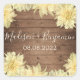 Sticker Carré Jaune Dahlia Fleur Russe Bois Mariage Date
