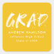 Scellez vos enveloppes de graduation et les faveurs de la fête de graduation avec des autocollants de graduation personnalisés! Les autocollants de graduation comportent un "Grad" en lettres blanches avec des plaques de peinture blanche et un arrière - plan ou une couleur jaune de votre choix. Personnalisez les autocollants en ajoutant le nom du diplômé, le nom de l'école et l'année de fin d'études.
