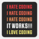 Sticker Carré Je déteste et aime Coding Programmer Cadeau