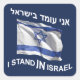Ne vous contentez pas de rester avec Israël ; restez en Israël. Dotée d'un drapeau israélien. Le texte anglais sous le drapeau dit : "I STAND IN ISRAEL." Texte hébreu au-dessus du drapeau : "Ani omed b'Yisrael" (א נ י ו מ ד du de la ע). Rentre à la maison, fais aliyah. Rejoignez ceux qui sont nés ici et ceux qui sont rentrés à la maison. Il n'y a pas de meilleur moyen de montrer votre soutien à Israël que de devenir un citoyen et de vivre ici.
