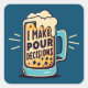 Ce design amusant est une tasse à bière débordante avec du texte ludique.