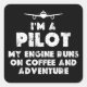 Sticker Carré Je suis un pilote amusant | café et aventure