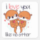 Sticker Carré Je t'aime comme No Otter mignon Saint Valentin