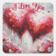 Sticker Carré Je T'Aime Deux Coeurs Abstraits Peindre Valentine