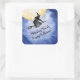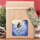 Fun aquarelle sorcière volant sur son balai est tout prêt à vous "sortir" un heureux Halloween. Aquarelle bleu ciel, pleine lune et silhouette de sorcière volante. Grand autocollant pour vos enveloppes, invitations et cartes.