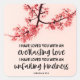 L'autocollant de citation inspirationnel représente une photographie naturelle d'une branche de fleurs roses sur un arrière - plan rose. Il présente une Bible Verse Jérémie encourageante 31:3, "Je vous ai aimés avec un amour éternel, je vous ai aimés avec une gentillesse indéfectible." Photo Patrick Shaun.