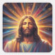 Sticker Carré Jésus dans un rayon radiant de couleur 1