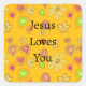 Sticker Carré Jésus Jaune Vous Aime Les Coeurs Vert Violet