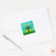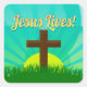 Sticker Carré Jésus vit en bleu/Brown Croix de Pâques chrétienne