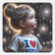 Sticker Carré Jeune Américaine observant les feux d'artifice
