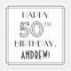 Cet élégant autocollant carré d'inspiration art déco des années 1920/1930 a le message "HAPPY 50TH BIRTHDAY", ainsi qu'un nom de destinataire personnalisé. Le numéro "50TH" a un style géométrique soigné, et il y a aussi une bordure multi-lignes autour du message de voeux d'anniversaire. Des autocollants élégants sur le thème de l’anniversaire comme ceux-ci peuvent être donnés ou utilisés à une fête d’anniversaire pour célébrer le cinquantième anniversaire de quelqu’un, ou peut-être utilisés lors de la préparation d’invitations ou d’enveloppements de cadeaux pour un tel événement. [~Z0000647]