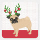 Sticker Carré Jingle Bells Carlin mignon avec Antlers Noël