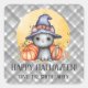 Un doux chat noir aquarelle dans un chapeau de sorcière avec des citrouilles, sur un fond à carreaux gris. Ces autocollants personnalisés Halloween sont idéaux pour les familles qui souhaitent ajouter une touche festive aux sacs de trick-or-treat, aux faveurs de fête et aux cadeaux saisonniers. Personnalisez avec votre nom pour rendre vos friandises Halloween encore plus spéciales.