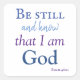 Un joli autocollant blanc, ce design comporte "Soyez immobile et sachez que je suis Dieu" Psaume 46:10. Cette écriture est écrite dans un beau texte bleu et violet. Parfait pour représenter votre foi partout où vous allez.
