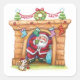 Sticker Carré Joli Père Noël de dessin animé descendant la chemi