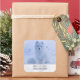 stickers de Noël avec une photo d'un renard blanc arctique. Un paysage hivernal enneigé entoure cette charmante créature.