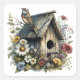 Sticker Carré Jolie aquarelle Rustique Birdhouse et Bird