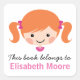 stickers sympa et amusant à la bibliothèque / étiquettes de livres pour les enfants avec une petite fille de dessin animé avec les cheveux bruns attachés dans les porcelets. Texte personnalisable "ce livre appartient à". Personnalisez le nom. Conception mignonne pour l'étiquetage des livres pour enfants.