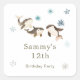 Autocollant rustique de fête d'anniversaire avec des baleines arctiques mignonnes et des flocons de neige. Parfait pour un anniversaire d'hiver. Les mots peuvent être changés en fonction de vos propres détails ou exigences