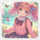 Sticker Carré Jolie fille Anime en Pigtails Roses