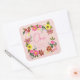 Sticker Carré Jolie Lapin Rose Lapin Fille Anniversaire