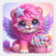 Sticker Carré Jolie lionne avec ailes et bonbons Panier