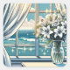 Sticker Carré Jolie vue sur l'océan et vase de fleurs