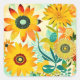 Sticker Carré Jolies Fleurs Jaunes Whimsical Folk Art