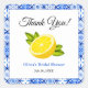 Thème de journée de mariage méditerranéen - Autocollant carré de journée de mariage remerciements citron et carrelage bleu méditerranéen !