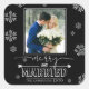 Autocollant carré de photo de typographie "Merry and Married" pour le premier Noël | Étiquette de vacances personnalisée pour jeunes mariés.