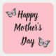 Sticker Carré Joyeuse fête des mères Scripts noirs Papillons ros