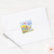 Un autocollant pour la Journée Nationale de l'Amitié qui se déroule le premier dimanche d'août de chaque année qui encourage les gens à se connecter avec des amis, à en faire un nouveau ou à se connecter avec de vieux amis. Cet autocollant illustre deux amis qui bavardent en achetant des bouquets dans un chariot à fleurs extérieur avec des bleuets dans le ciel illustré d'encre et d'aquarelle. Customisez le texte correspondant à vos besoins.