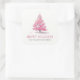 Joyeux Noël rose Arbre de Noël Personnalisé Texte ou Nom de famille Autocollant Carré moderne