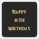 Sticker Carré Joyeux 16e anniversaire Or Jaune Seize âge personn
