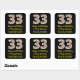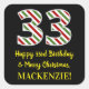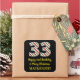 Ce sticker simple et amusant sur le thème de Noël et d'anniversaire Décembre 25e anniversaire de conception comporte un grand nombre "33", avec un motif à rayures vert, blanc et rouge. Il comporte également le message "Joyeux 33e anniversaire & Joyeux Noël", et un nom personnalisé. L'arrière - plan est noir de couleur. Des autocollants comme celui-ci peuvent être utilisés pour préparer des cadeaux qui sont donnés à quelqu'un dont le trente-troisième anniversaire tombe le 25 décembre (jour de Noël). [~Z0000409]