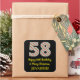 Ce sticker simple et amusant thème de Noël et thème d'anniversaire Décembre 25ème anniversaire de conception dispose d'un grand numéro "58", avec un motif rouge/blanc/vert rayures. Il comporte également le message "Joyeux 58e anniversaire & Joyeux Noël", et un nom modifiable. L'arrière - plan est noir de couleur. Des autocollants comme celui-ci pourraient être une façon amusante de préparer des cadeaux qui sont donnés à quelqu'un qui est né le jour de Noël (le 25 décembre) et qui célèbre son cinquante-huitième anniversaire. [~Z0000409]