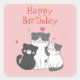 Sticker Carré Joyeux Anniversaire Chat Mignon Rose