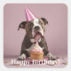 Sticker Carré Joyeux anniversaire ! Chien mangeant du gâteau