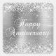 Sticker Carré Joyeux Anniversaire de Mariage Feuille d'Argent Pa