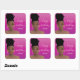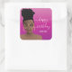 Sticker Carré Joyeux Anniversaire, Femme noire aux tons or, Pink