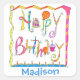 Sticker Carré Joyeux Anniversaire Nom de fête Blanc personnalisé