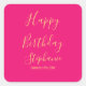 Sticker Carré Joyeux Anniversaire Or Rose Chaud Nom Personnalisé