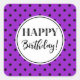 Sticker Carré Joyeux Anniversaire Pourpre Blanc Points Noirs