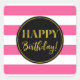 Sticker Carré Joyeux Anniversaire Rose Noir Or Blancs