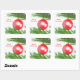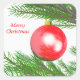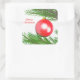 Stickers avec mon oeuvre originale d'une jolie boule de Noël rouge vif accrochée à une branche d'arbre de Noël. Le texte personnalisable dit "Joyeux Noël".