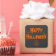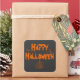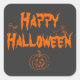 Un autocollant amusant Happy Halloween noir et orange avec des fantômes et un citrouille.