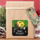 Cet autocollant amusant et éffrayant présente de mignons monstres Frankenstein à côté d'une maison hantée. Dans l'arrière - plan est une pleine lune avec des chauves-souris et un ciel de nuit vert avec des étoiles. Le texte combine les polices décoratives et serif pour un look élégant et moderne. C'est parfait pour une fête d'Halloween.