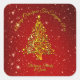 Sticker Carré Joyeux Noël 20XX Red Gold Tree étoiles